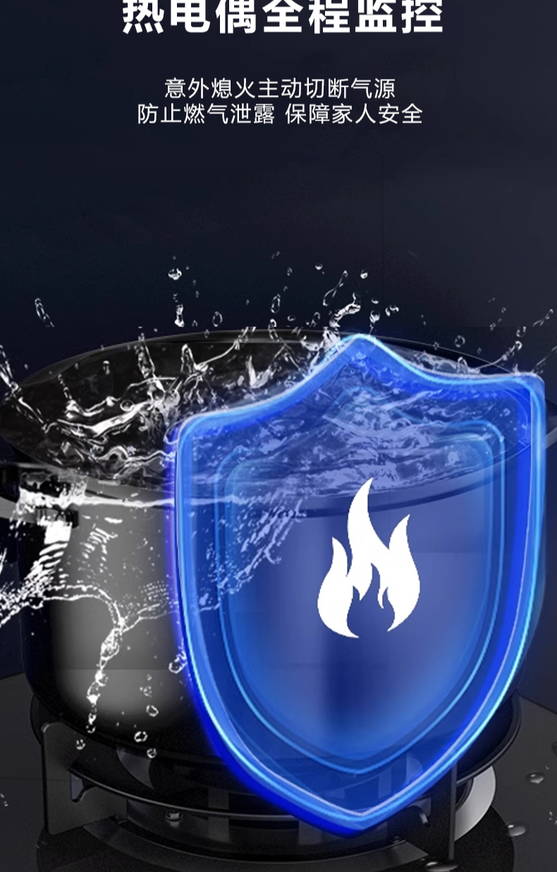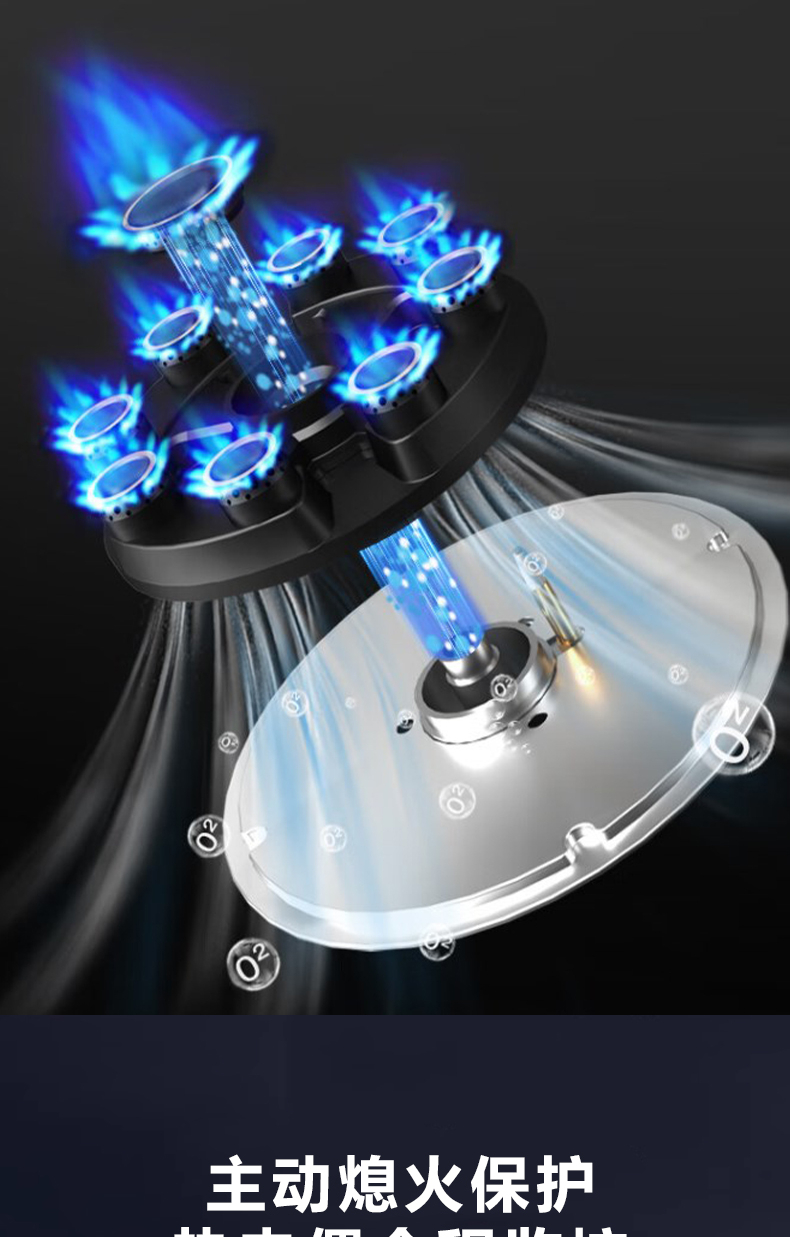 5 2kW大火力,九頭猛火灶,63%熱效率,6mm厚鋼化玻璃面板,4層防爆