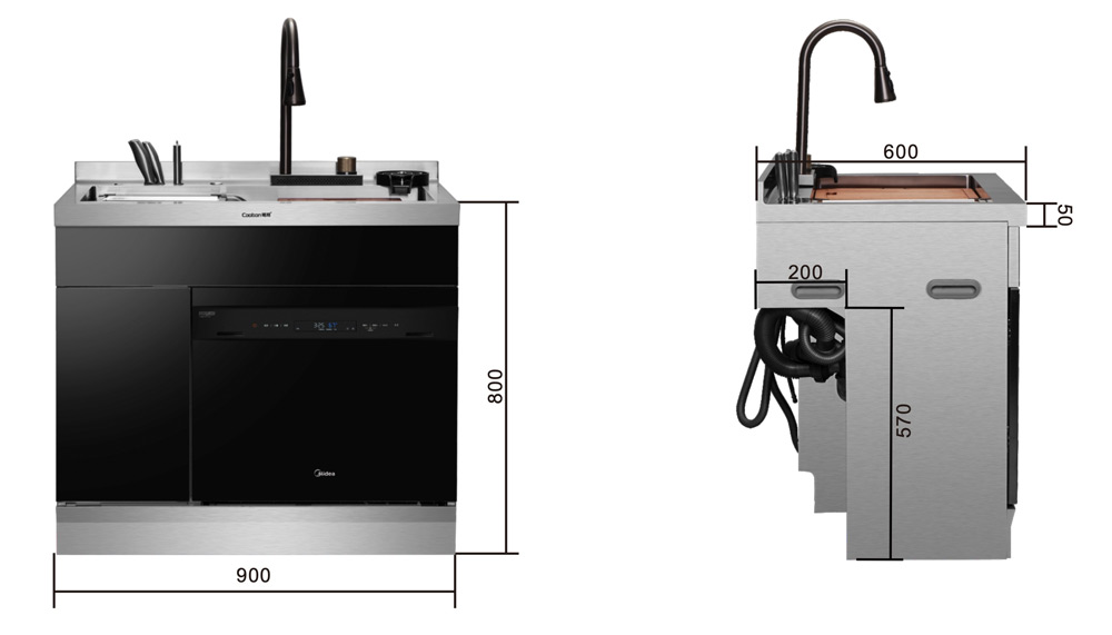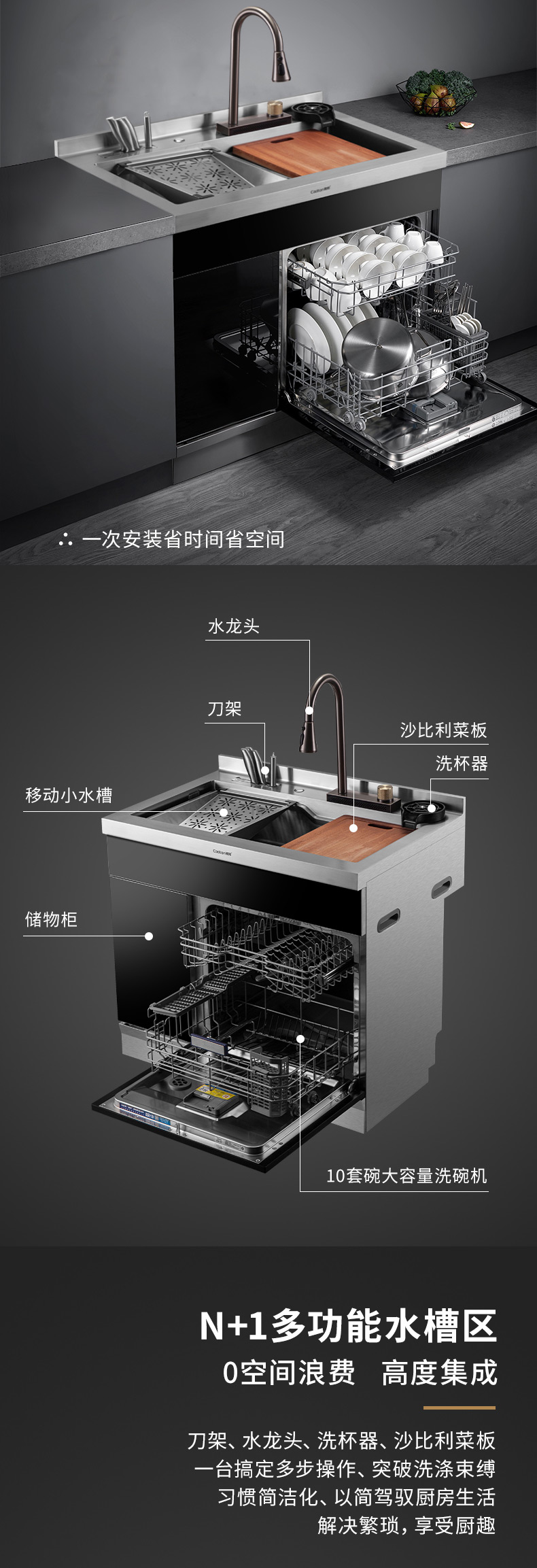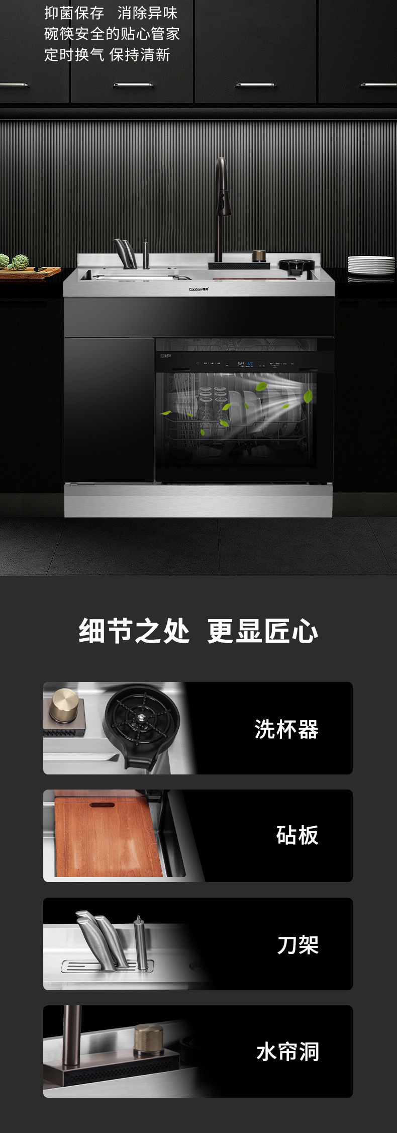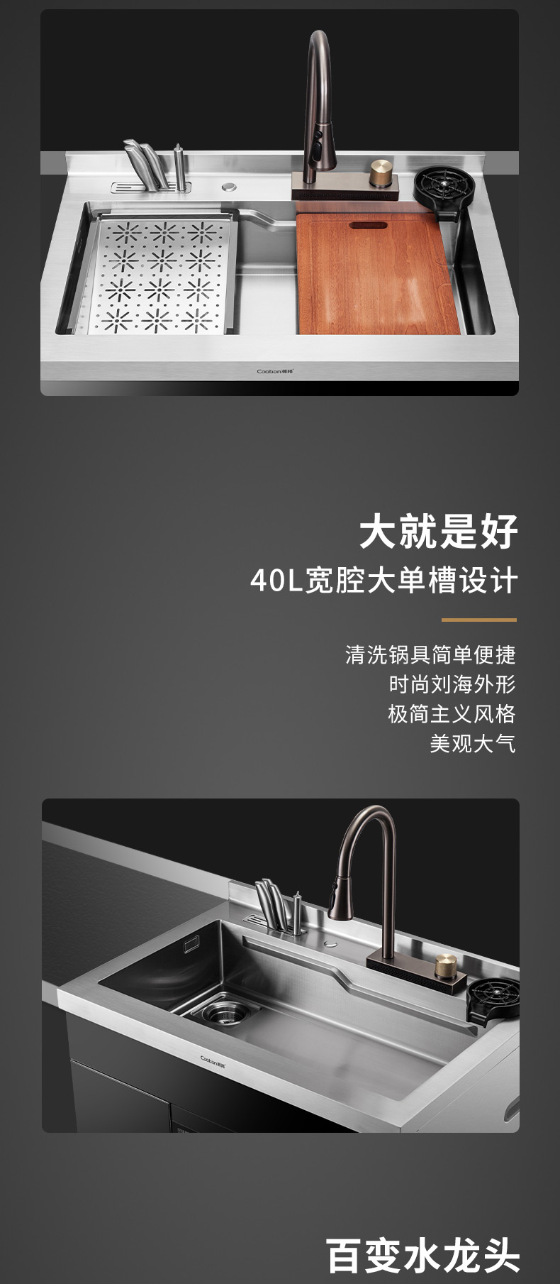 40L大容量水槽,可變伸縮式水龍頭,便捷洗杯器,洗碗機,主動強排設計